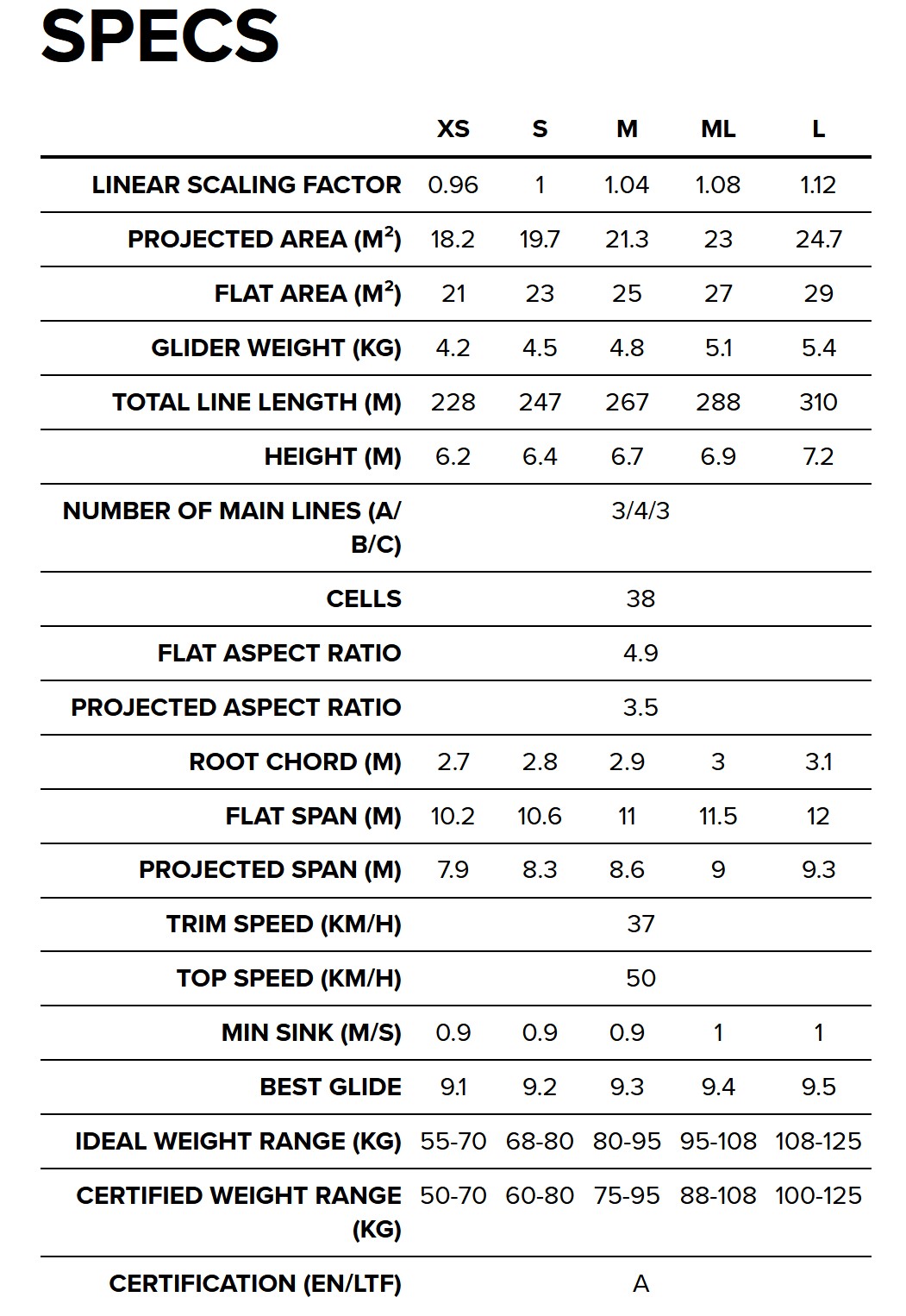 NOTE: ABOVE IS A GENERAL SIZE GUIDE – Taken directly from the Manufacturer’s website. In deciding which glider size is appropriate for you, things like elevation, EQUIPMENT, and age DO play a factor in sizing. Please talk to your Authorized BlackHawk Dealer or contact us with any questions prior to ordering your wing. BlackHawk is always here to help you maximize your Powered Paragliding experience!
